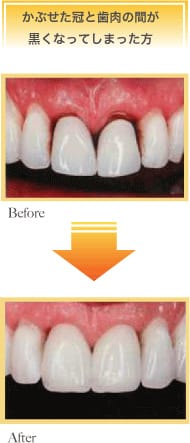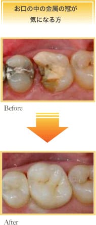 保険を適用した場合の治療では、金属の被せ物、金属の詰め物、いわゆる銀歯を使用します。もしくは、歯の色をしたプラスチックのような材料の詰め物を使用します。銀歯は目立つため見た目が気になることが多いです。プラスチックのような材料も経年的に色が変色していきます。そのような状態を改善するのにお勧めなものに、自然な仕上がりを実現する審美治療があります。主に使用するのは、セラミックです。セラミックは本物の歯のような色調を持ち、変色しなく丈夫な素材です。金属アレルギーの方でも安心して使えます。気になる方はご相談下さい。